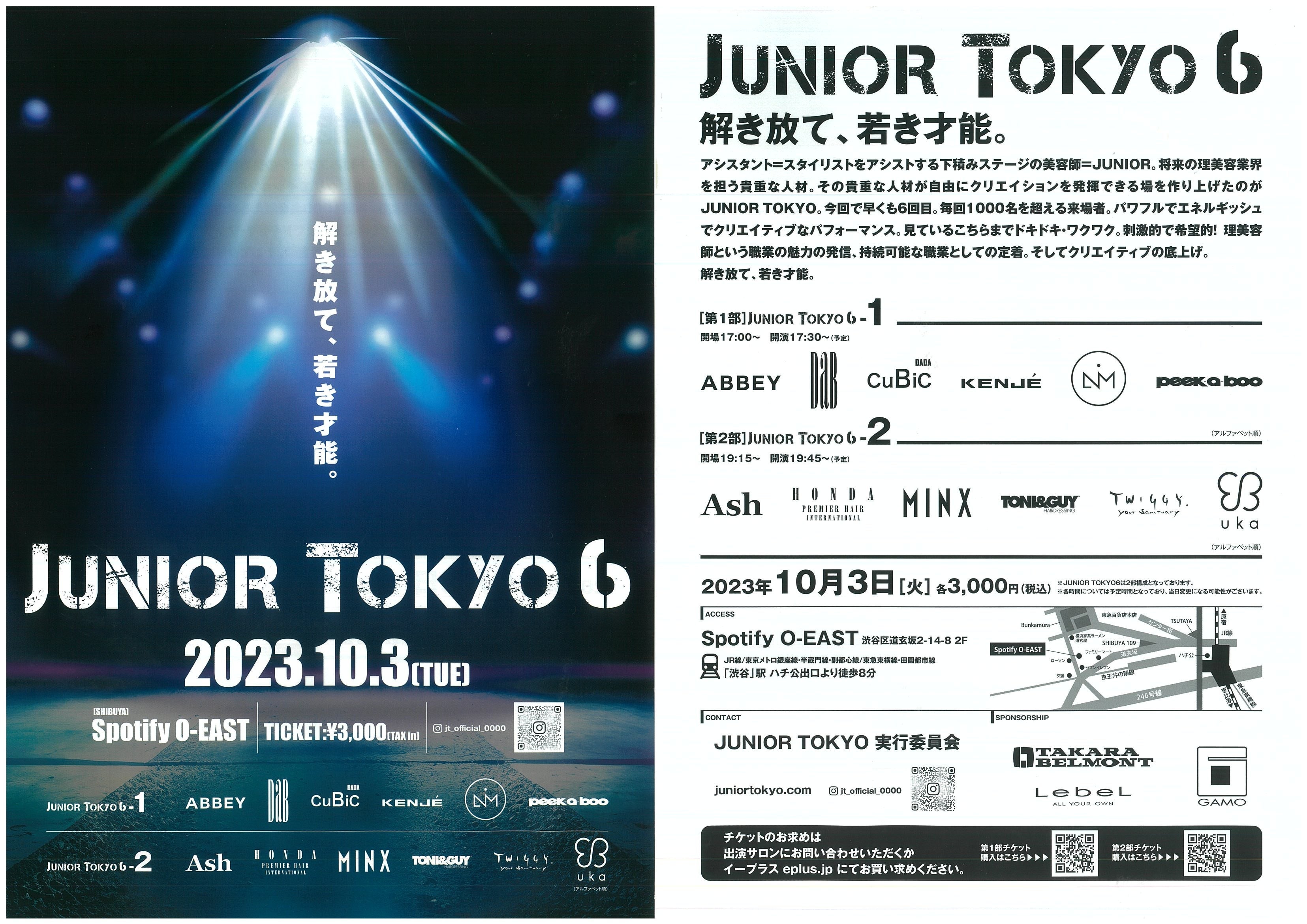 JUNIOR TOKYOはトータルビューティーブランドである株式会社ウカ、ヘアサロンを展開する株式会社ダブ、イベントをプロデュースする株式会社ケィビープランニングインターナショナルの三社が立ち上げた年に一回開催されるアシスタント向けのヘアショーイベントです。JUNIOR TOKYOの特徴はヘアメイクはもちろん、モデルセレクト、衣装やショーの構成もアシスタントが担当してることです。このヘアショーは、スタイリストになる夢を持つデビュー前の若者がクリエイティブな作品を通して自己表現できる舞台になります。2017年からスタートしたJUNIOR TOKYOに、アシスタントのモチベーションや技術向上などの目的でAshは毎年(コロナ禍での中止を挟み)参加しています。