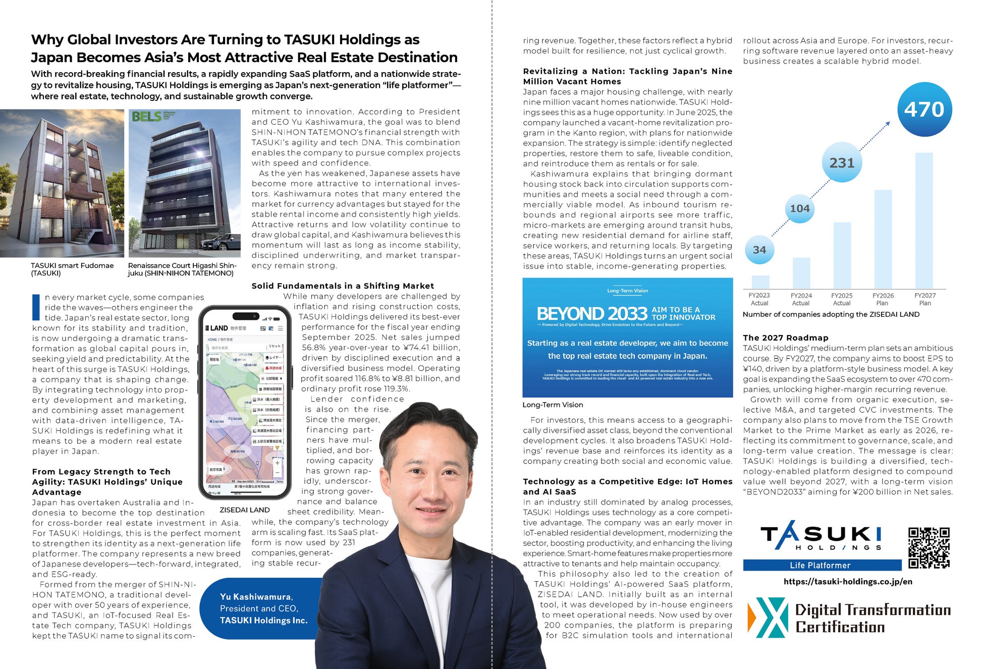 株式会社タスキホールディングス(本社:東京都港区、代表取締役社長:柏村 雄、以下:当社)は、米経済誌「Bloomberg Businessweek」2026年1月号に、当社柏村のインタビュー記事が掲載されたことをお知らせいたします。