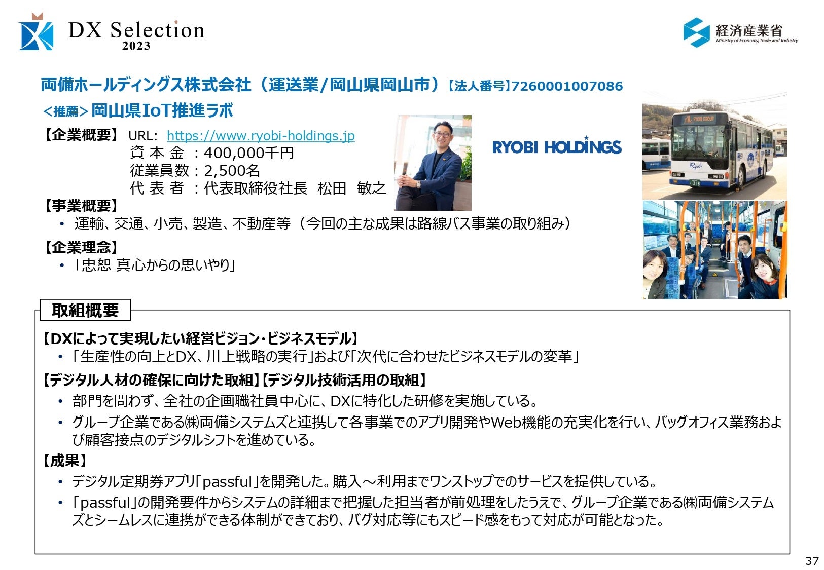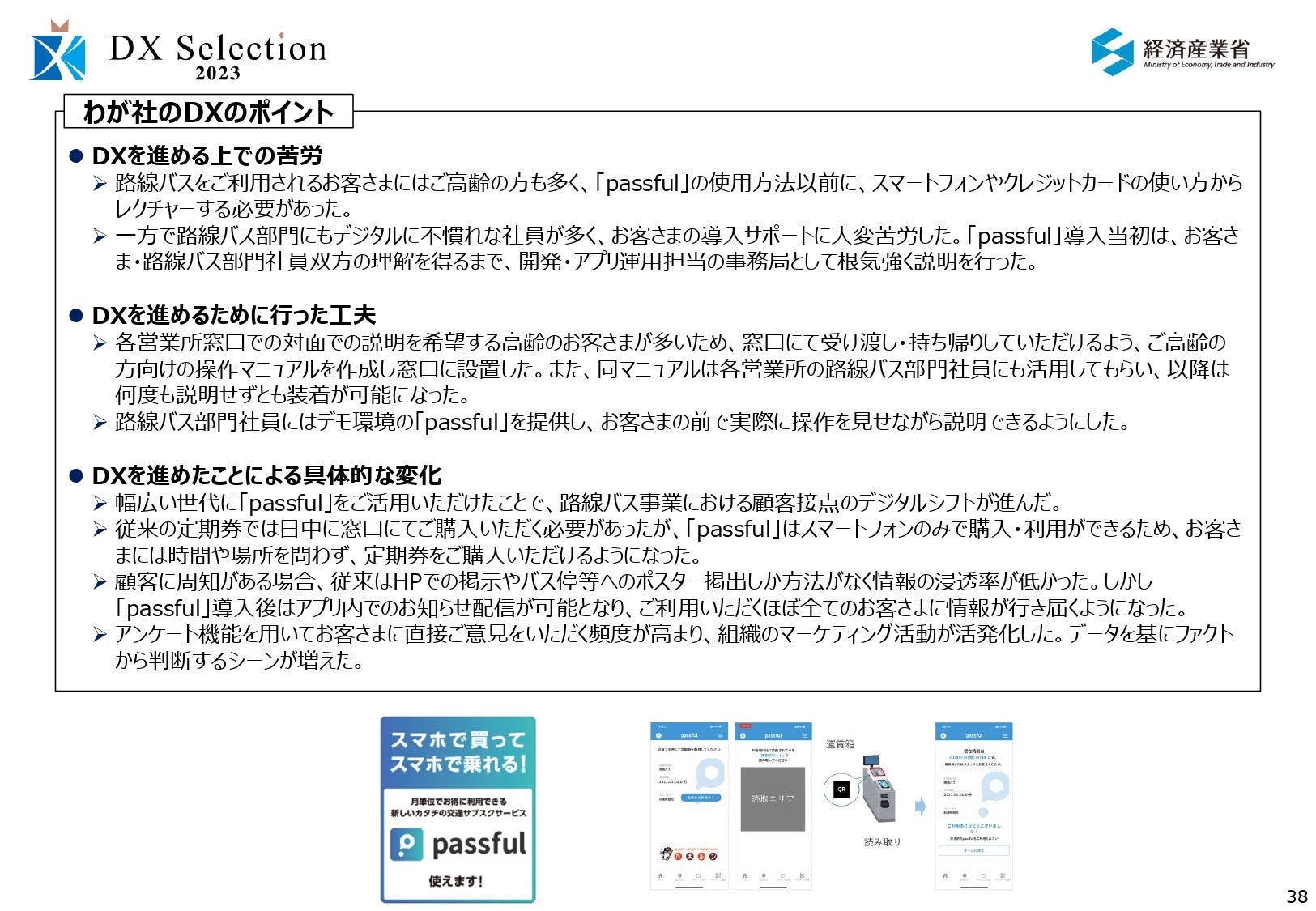 両備グループ(事務局:岡山県岡山市北区下石井、グループ代表兼CEO:小嶋光信)では、スマホの操作だけで簡単に購入、乗車ができるデジタル定期券サービス「passful(パスフル)」を運用しています。このたび、その「passful(パスフル)」が岡山IoT推進協議会さまの推薦を受け、経済産業省より「DXセレクション2023」の優良事例に選定されましたので、お知らせいたします。