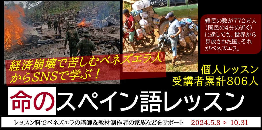 不運な境遇に生まれてしまったベネズエラの人たちを少しでも助けようと、途上国・国際協力に特化した非営利メディアの「ganas」(運営:NPO法人開発メディア)が4年前に立ち上げたwin-winのプログラムが、経済崩壊で生活苦に陥るベネズエラ人から学ぶ『命のスペイン語レッスン』です。12期生の募集をこのほどスタートします。