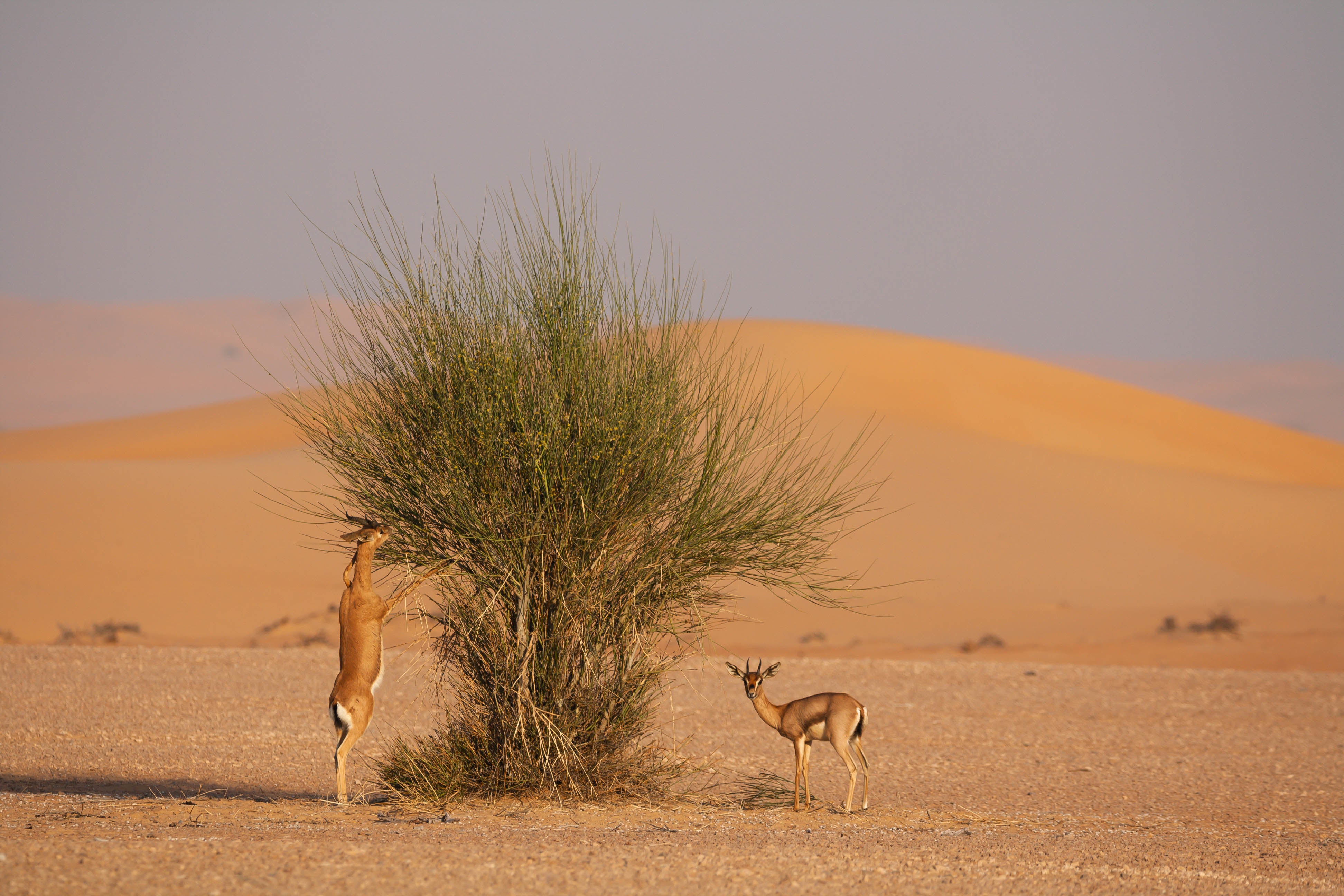 - 1,300頭以上のサンドガゼル、アラビアンガゼル、アラビアンオリックス:当初わずか230頭しか生息していなかったこれらの脆弱な有蹄類は、DDCRの再導入と繁殖プログラムによって救済され、着実に増殖し続けています。放し飼いの哺乳類個体群の持続可能な発展に寄与し、生態系全体の健全性に貢献しています。さらに、171頭のアラビアンオリックスがUAEの他の保護地区に移されています。