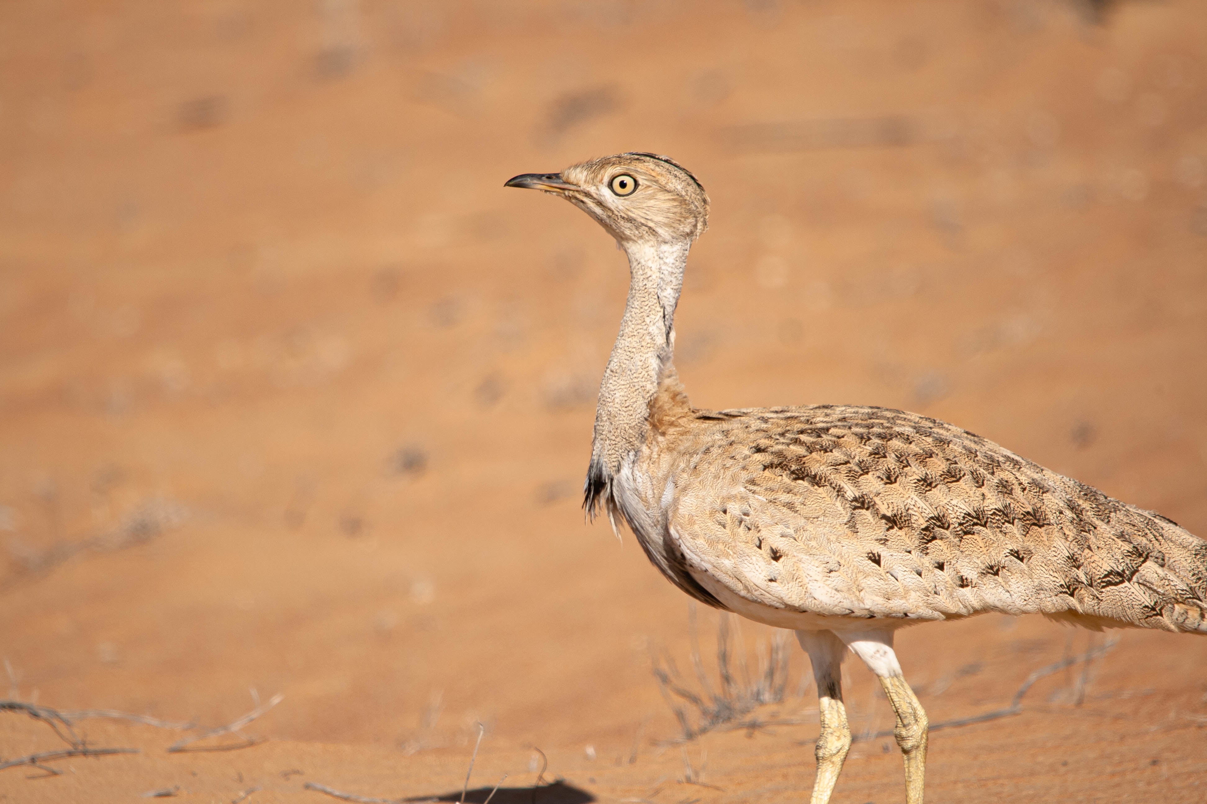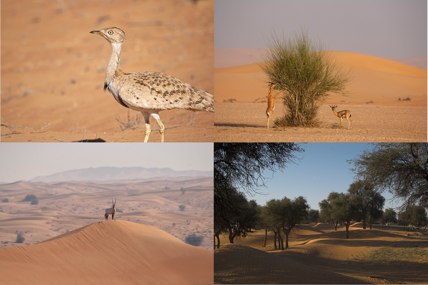 - 鳥類の繁栄:アラブ首長国連邦に生息し、ゆかりの深い鳥である サエリショウノガンは、2010年以来、DDCRに2,800羽以上再導入され、保護地区内で自由に生息しています。ファラオワシミミズクも数多くDDCR内で生息しており、保護地区の南側で自然繁殖しています。また、この保護地区は絶滅危惧種であるミミヒダハゲワシの重要な餌場となっている他、UAEでは珍しいクロハゲワシの観測も数多く記録されています。
