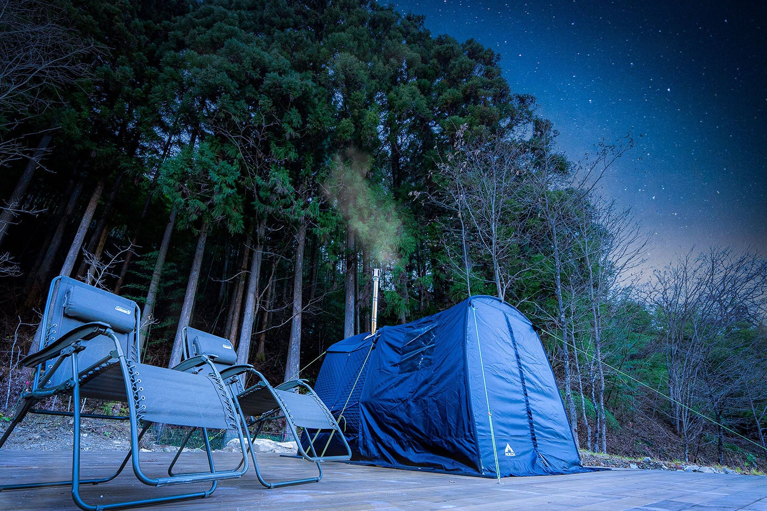 《日本一の星空で"ととのう"!》長野県・阿智村の大人気グランピング施設「mökki」に極上の癒し体験を楽しむテントサウナ登場