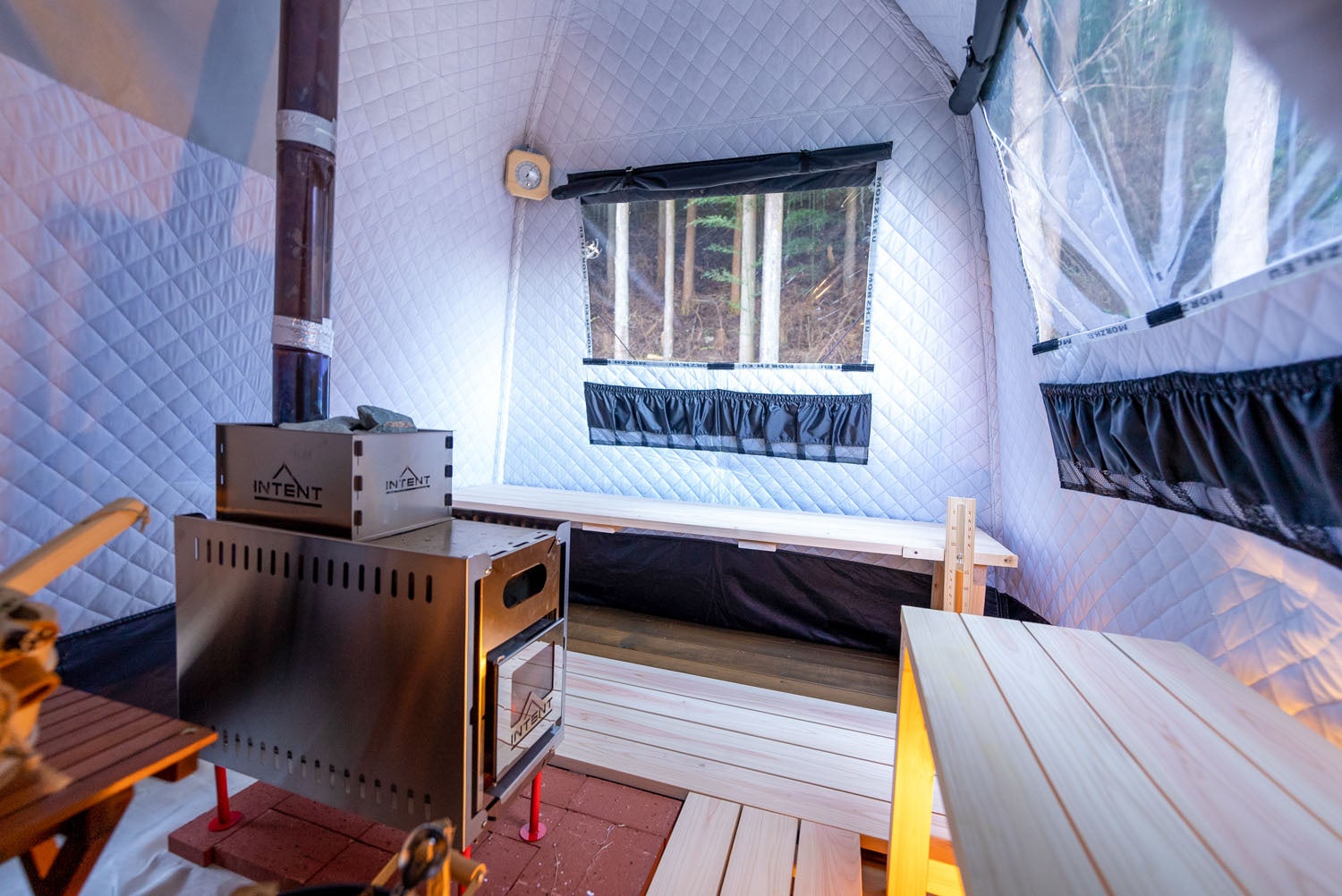 MORZH(モルジュ)はロシア語で「セイウチ」を意味する言葉。マイナス20℃以下の環境でも熱いサウ ナに入るために開発されたテントサウナブランドで現時点で世界“最熱”と言える高い機能性を誇ります。
