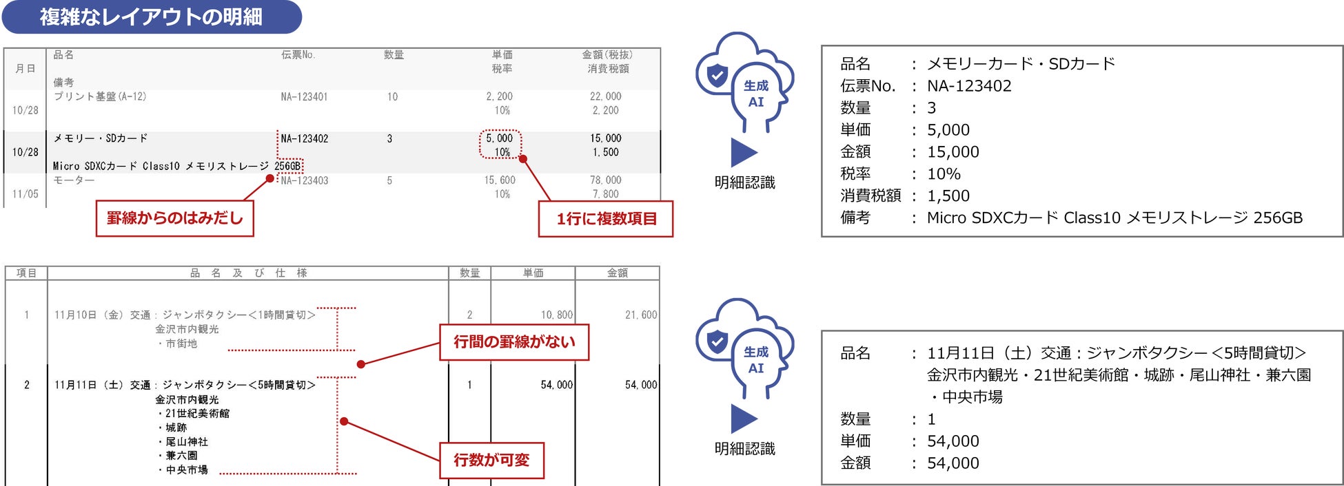 2.新機能「生成AI連携」で、複雑な明細項目を高精度に読み取り