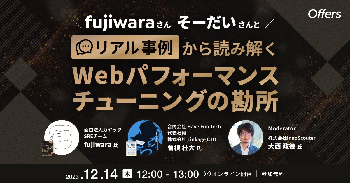 12/14(木)12:00~「fujiwaraさん・そーだいさんとリアル事例から読み解く Webパフォーマンスチューニングの勘所」を開催