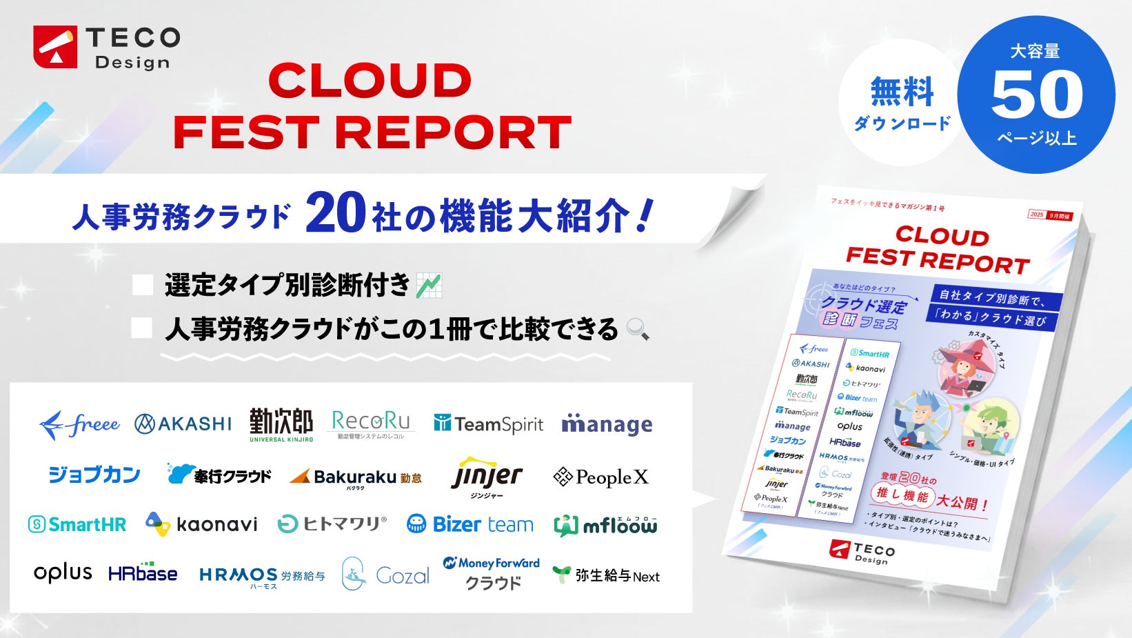 株式会社TECO Design(本社:東京都新宿区、代表取締役社⻑:杉野 愼、以下 当社)は、2025年9月に開催した「あなたはどのタイプ?クラウド選定診断フェス」の内容をまとめたイベントレポート『フェスマガジン 創刊号』を公開しました。
