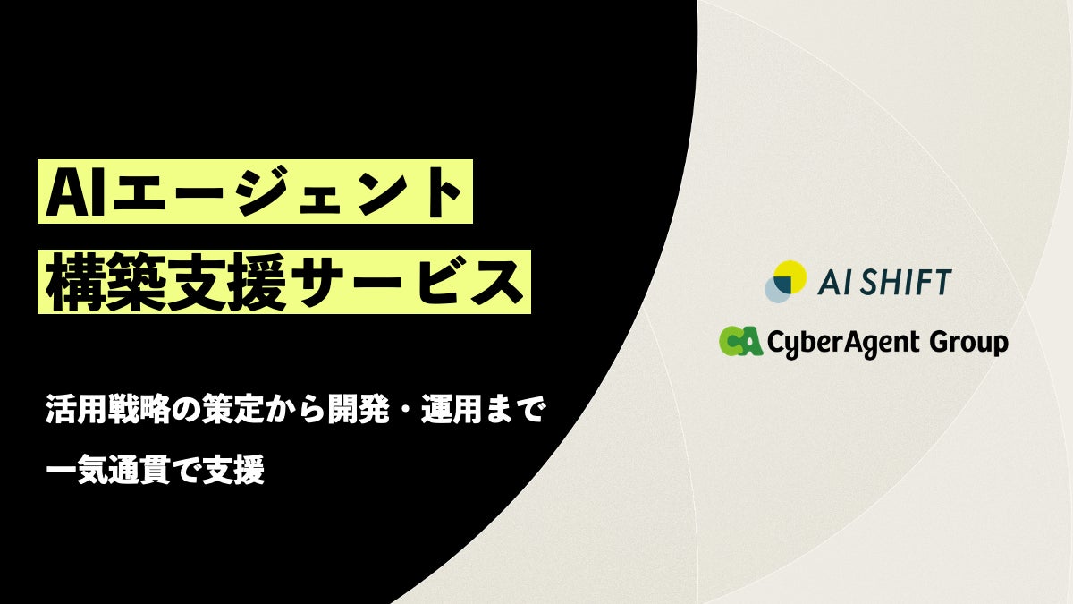 株式会社サイバーエージェント(本社:東京都渋谷区、代表取締役:藤田晋、東証プライム市場:証券コード4751)の連結子会社でAIエージェントを提供する株式会社AI Shift(本社:東京都渋谷区、代表取締役社長:米山結人、以下「当社」)は、企業におけるAIエージェントの活用戦略の策定から実装・運用までを包括的に支援する「AIエージェント構築支援サービス」の提供を開始します。本サービスにより、企業における最適なAIエージェントの効率的な導入と、生産性の向上を実現します。