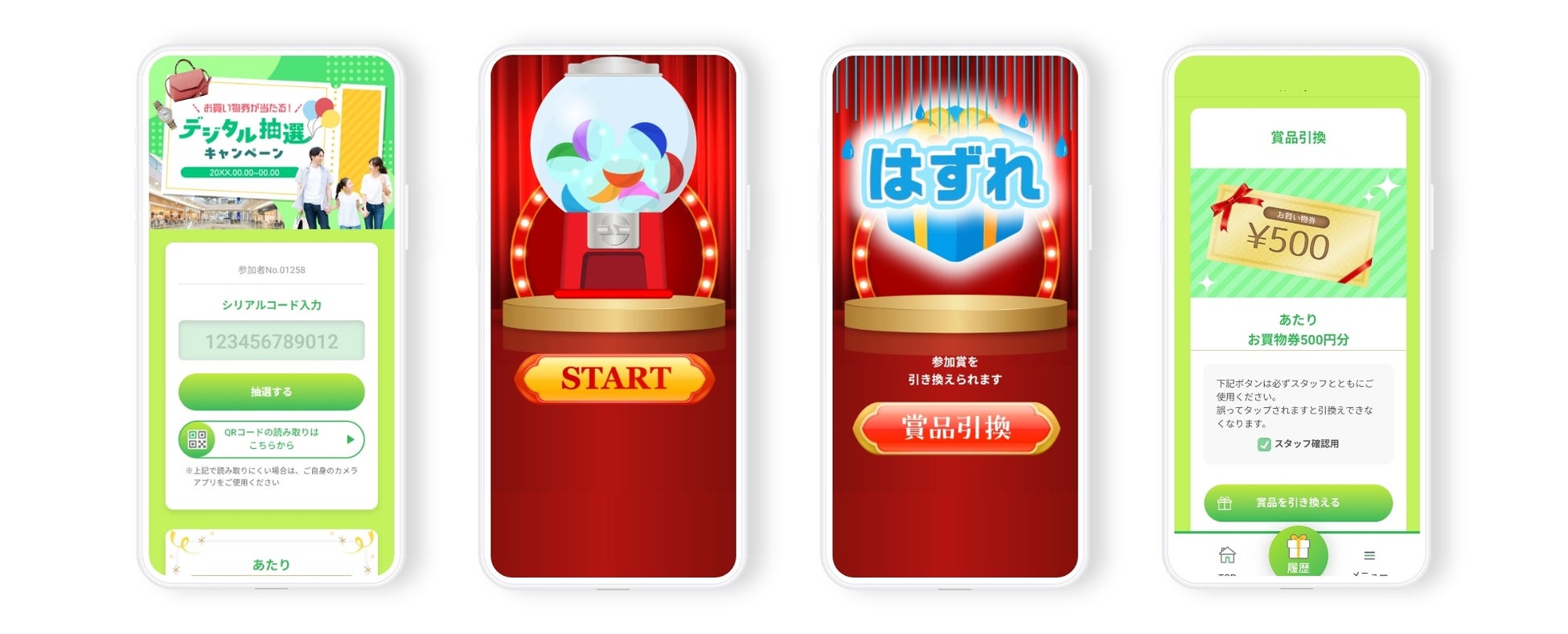 利用ケースに応じて、参加者がワクワク感を感じられる抽選ゲームアニメーションを選択できることで、キャンペーンをさらに盛り上げ、参加者に印象的な体験を届けます。