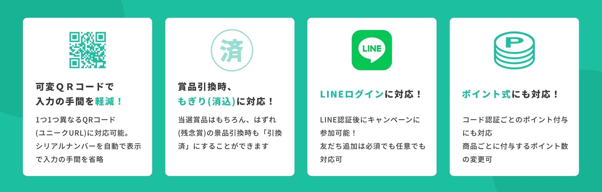 1つ1つ異なるQRコードを発行することができ、参加者はQRコードを読み取ることでシリアルコードが自動入力され、手動での入力作業を省略できます。これにより、手入力によるミスや時間のロスを防ぐことができ、QRコードを読み取るだけで誰でも簡単に抽選に参加できるようになります。