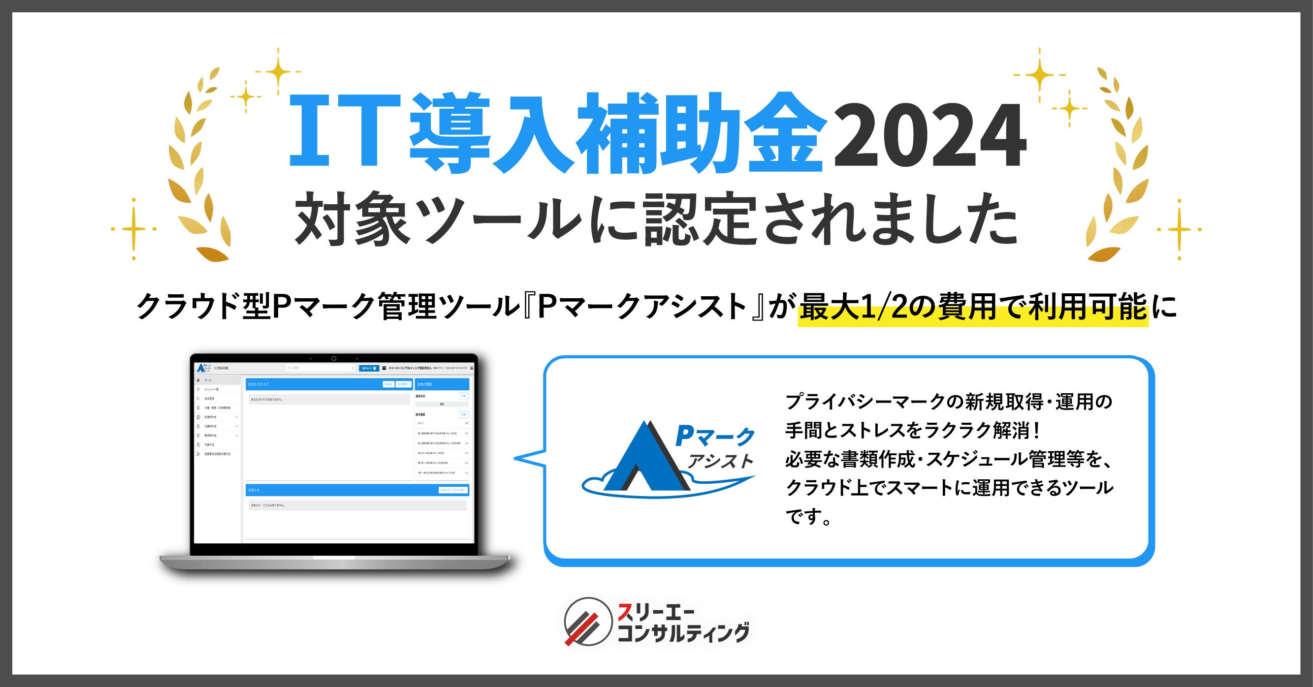 クラウド型Pマーク管理ツール『Pマークアシスト』、IT導入補助金2024の対象ツールに認定!最大1/2の費用で利用可能に