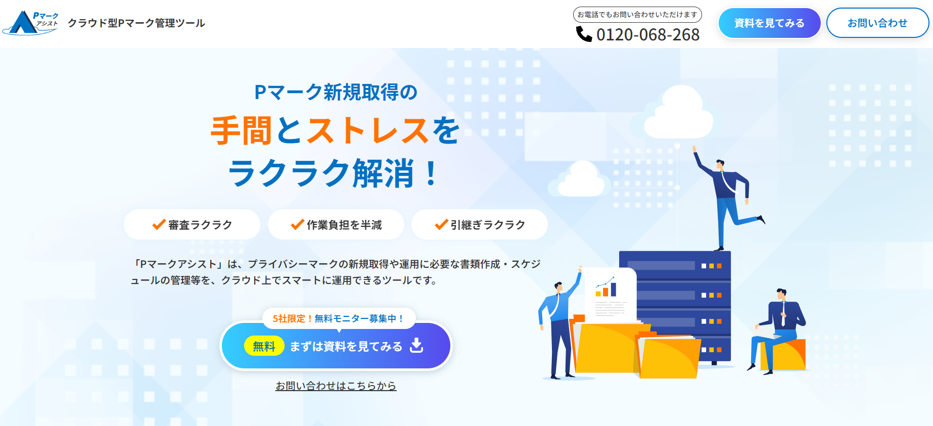 「これからPマークを新規取得しようと考えている」「Pマークの自社運用で苦労が多い」という方へ、クラウド型Pマーク管理ツール『Pマークアシスト』で効率的なPマーク取得・運用を実現〈月額2万円〉