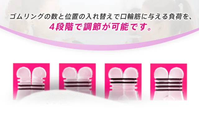 - 口に挟んですぼめるだけの簡単トレーニング!筋力に合わせて4段階で負荷の調節が可能。