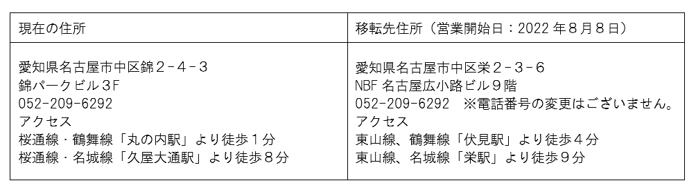 それに伴い、当社社員も在宅勤務に移行しており、こうした環境変化の中、従来の事業所規模を維持する必要性は低下したと判断したことから、この度、名古屋支店の移転を決定しました。