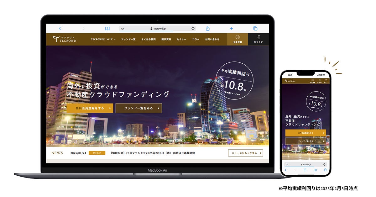 1口10万円から海外に投資ができる不動産クラウドファンディング「TECROWD」の75号ファンド(募集金額約15億円)を2月6日(木)18時より募集を開始いたします。
