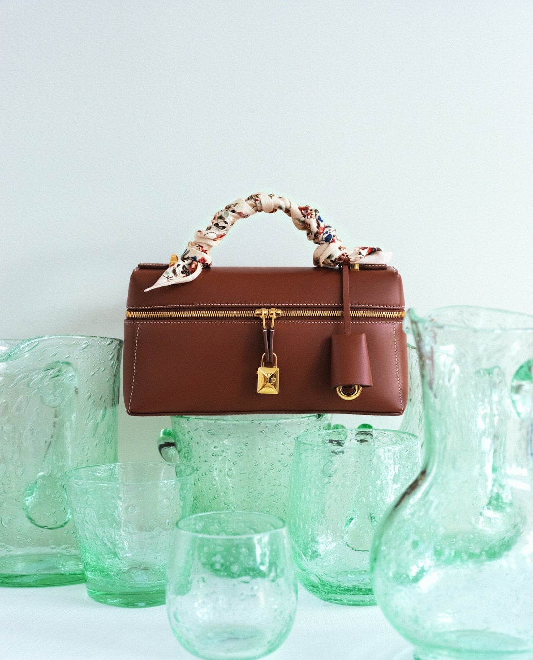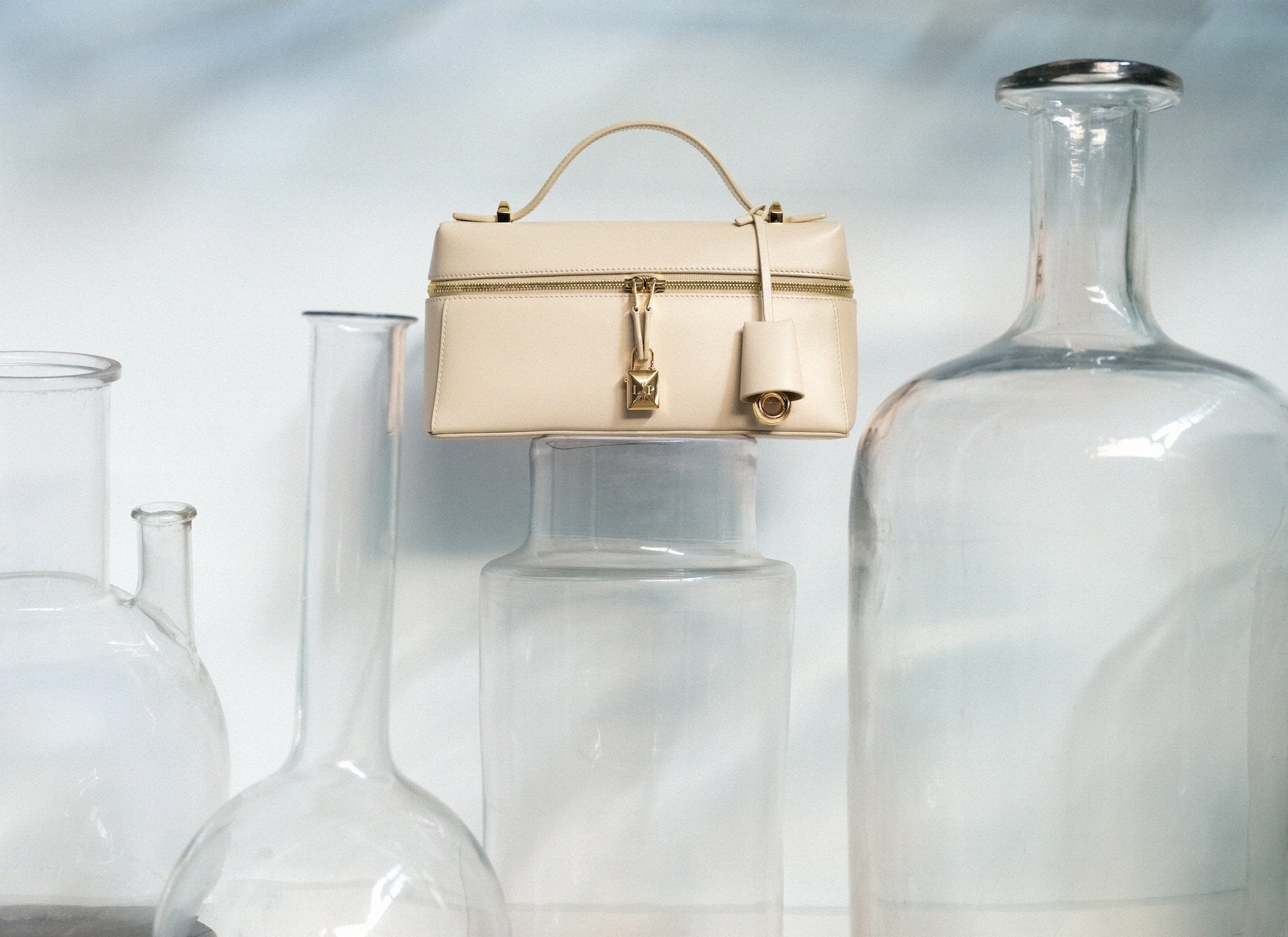 高度な技術と卓越した職人技を駆使した、洗練された構造のアシンメトリーなデザインは、背面パネルは底面から前面に向かってカーブを描き、ひとつのボリュームを形成しています。伝統的な革細工を彷彿させるステッチを施したこのバッグは、構造的でありながら、ふっくらと丸みを帯びた手触りを実現しています。象徴的なヴィンテージスタイルのレザーのキーフォブや、LPのイニシャルが刻印された立体的で丸みを帯びたチャームなど、細部にまでこだわったディテールが、ゆったりとしたジッパーの開口部を飾ります。