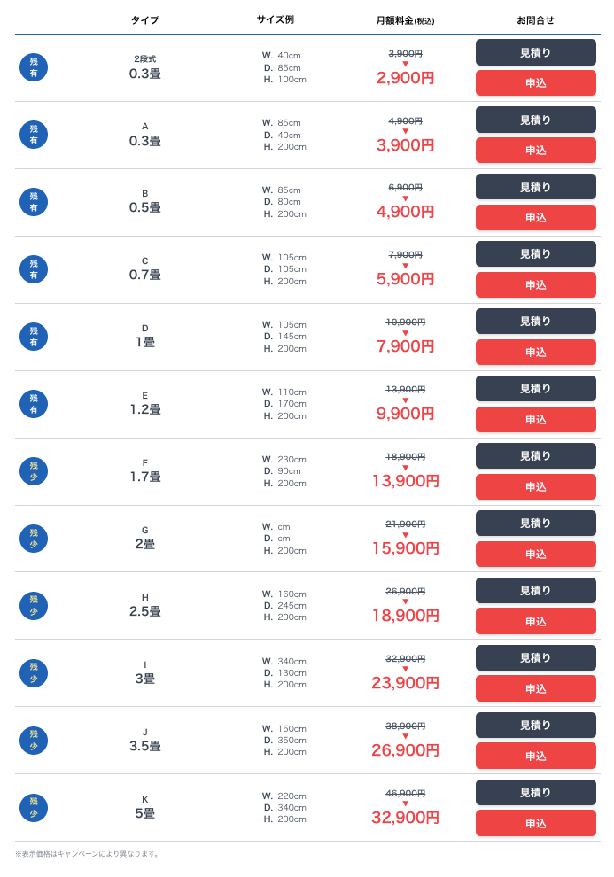 荷物以上に大きな部屋を借りてしまうことや、狭すぎて荷物が入らなかったなんていうトラブルを回避できます。