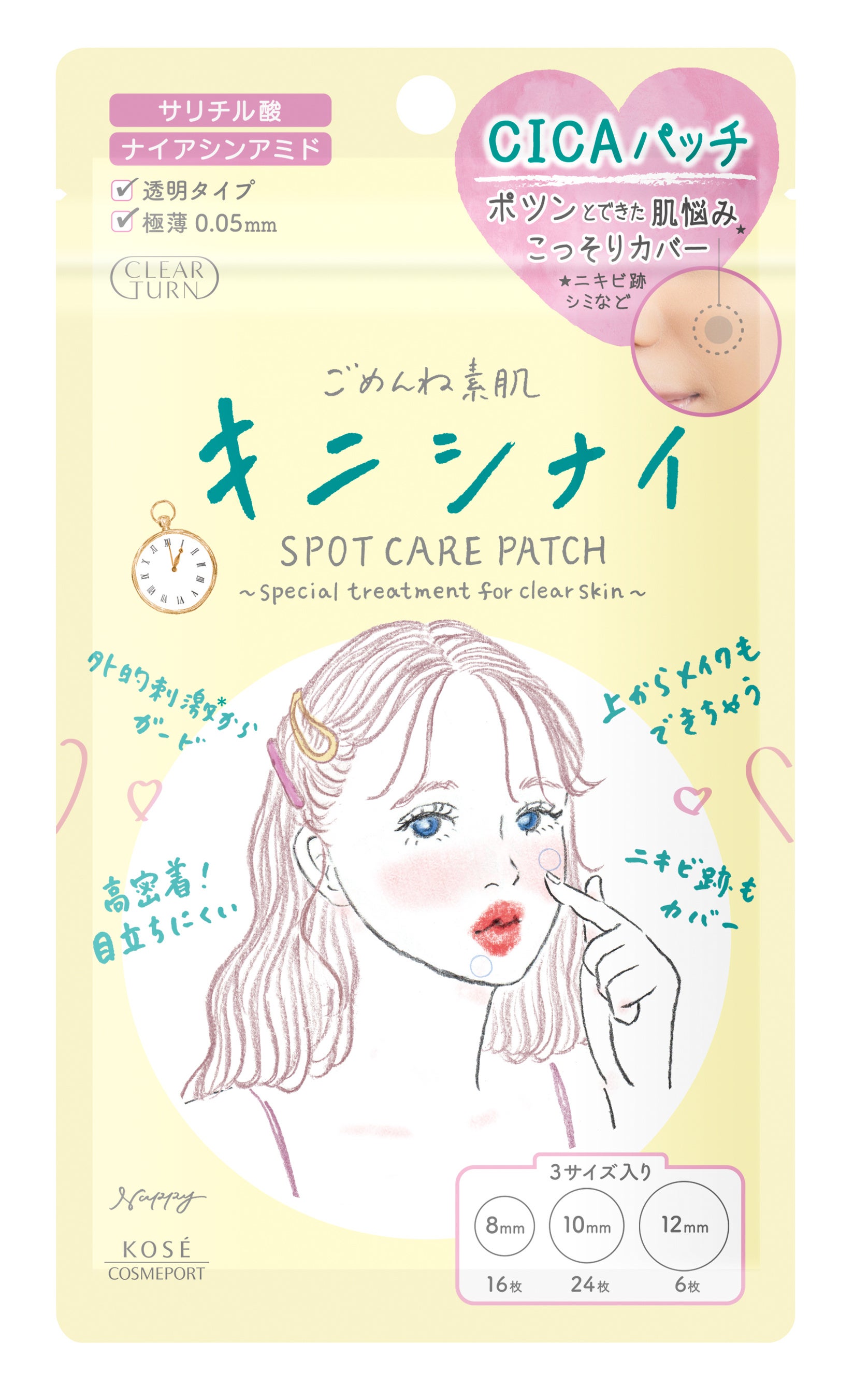 このような背景から、『クリアターン』の敏感・肌あれケアシリーズである「ごめんね素肌」シリーズからニキビ・肌あれをケアする薬用のシートマスク「キニナルマスク」、出来てしまったトラブルスポット※1をカバーして乾燥や摩擦などの外的刺激からまもる「キニシナイパッチ」を発売いたします。商品デザインは「ごめんね素肌」シリーズ共通となる人気イラストレーターNAPPYさんとコラボレーションし、ニキビをケアする女性のイラストを柔らかい世界観で表現しました。