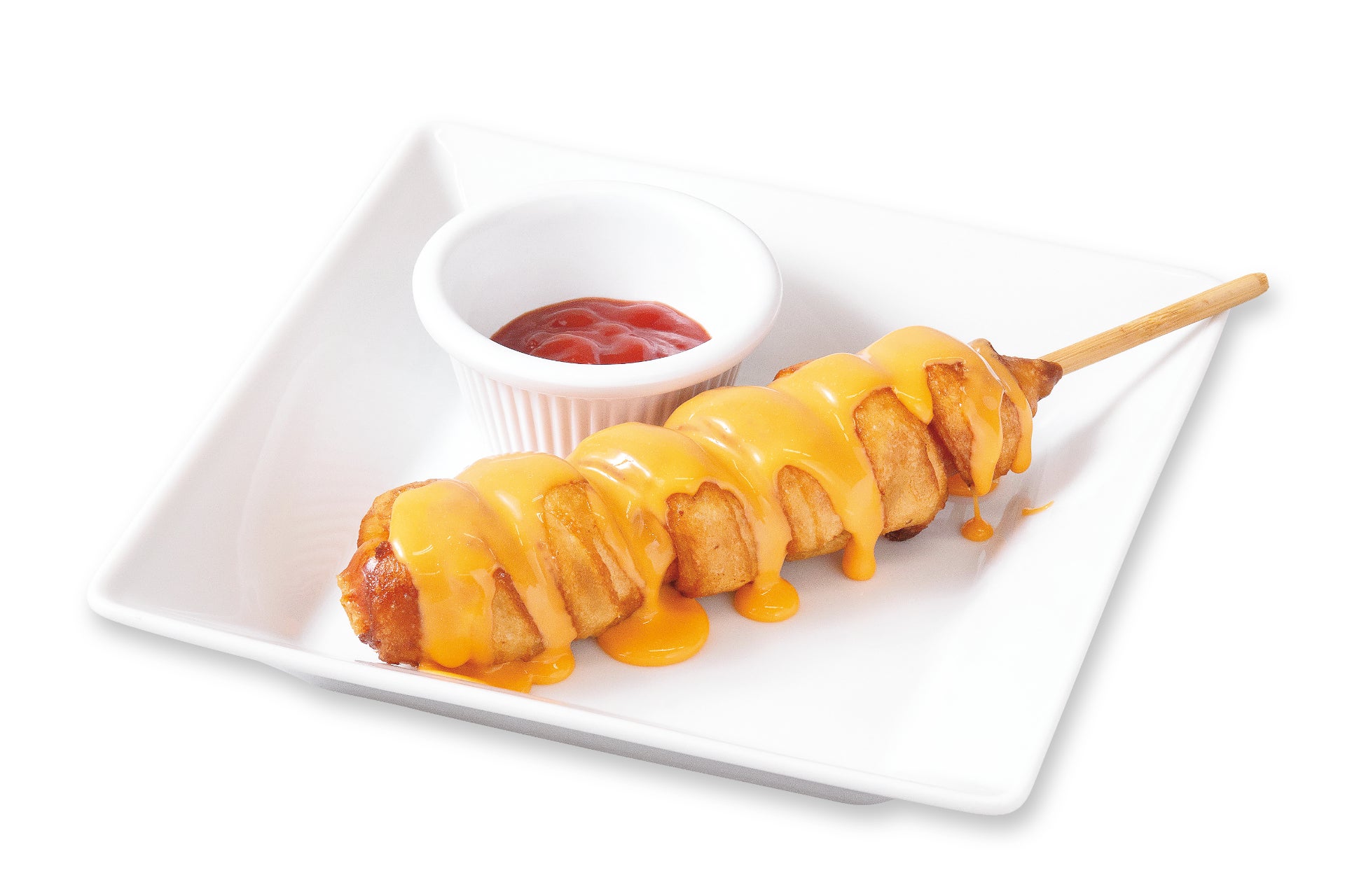 サクっと食感がたまらないチュロドックにチェダーソースをたっぷりと。手軽に食べられるサイズが嬉しい一品。