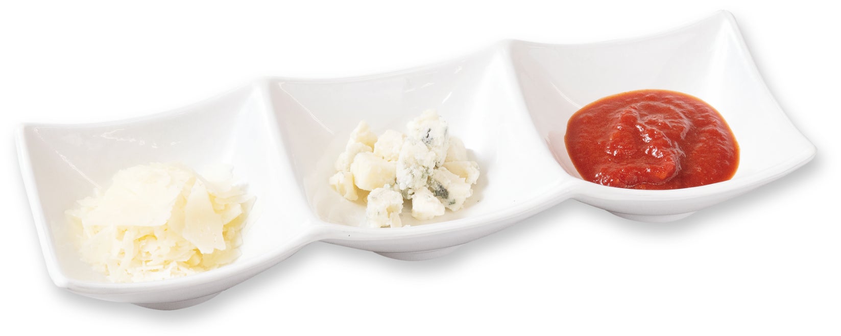 トッピングでパルメザンチーズ、ゴルゴンゾーラチーズ、濃厚トマトソースがセットですので味変をしてお楽しみください。