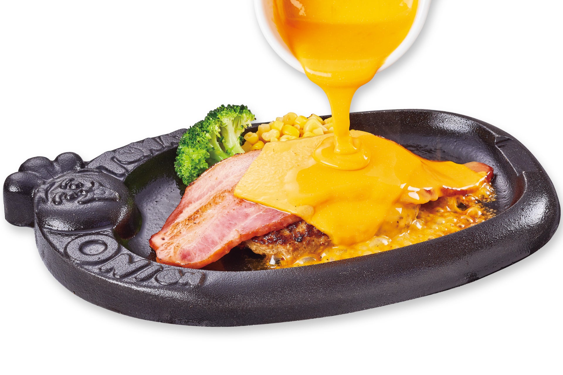 卵とチーズとハンバーグの肉汁のハーモニーをお楽しみください。