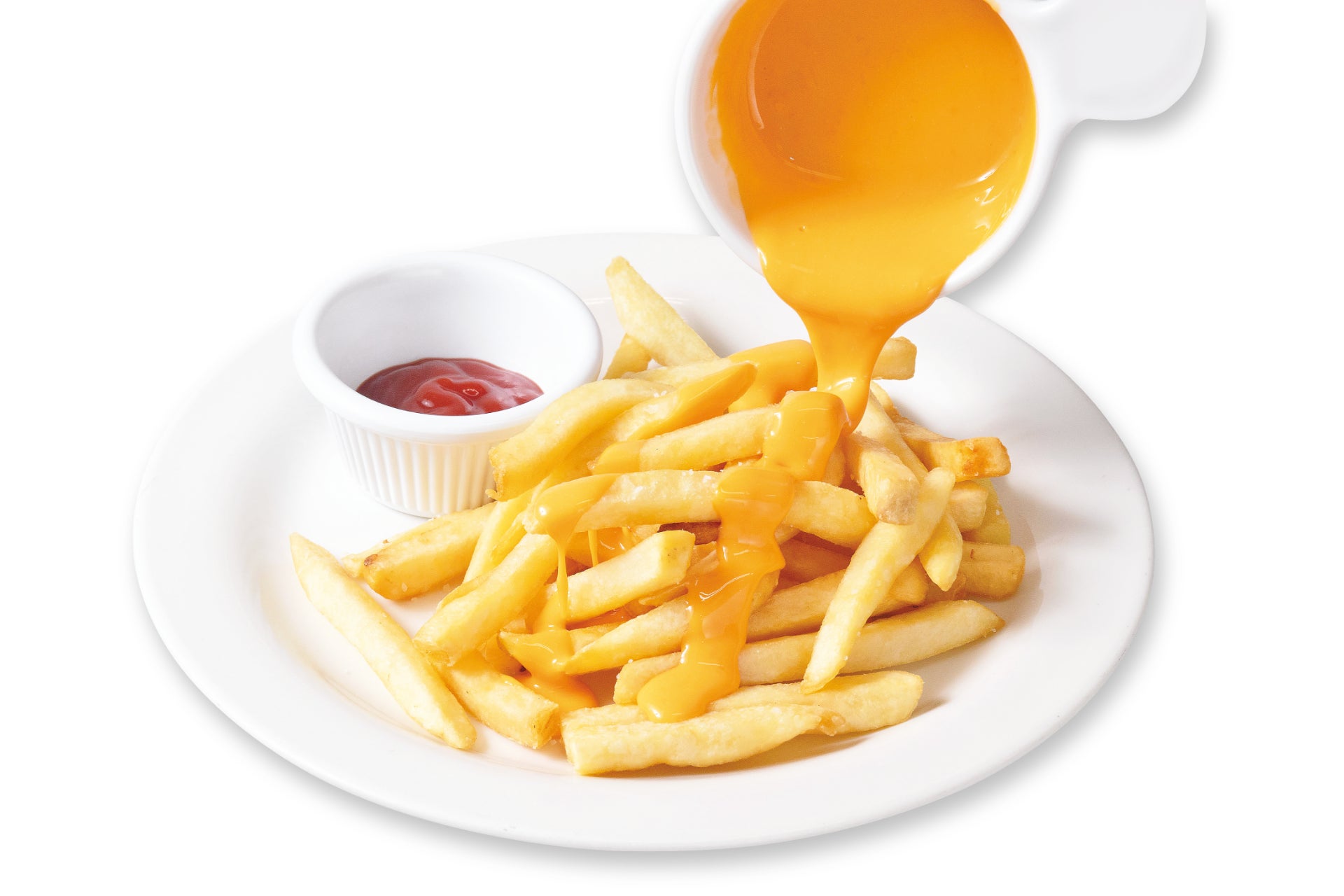 揚げたてアツアツのフライドポテトにチェダーソースをたっぷりと。シェアにもおすすめです。