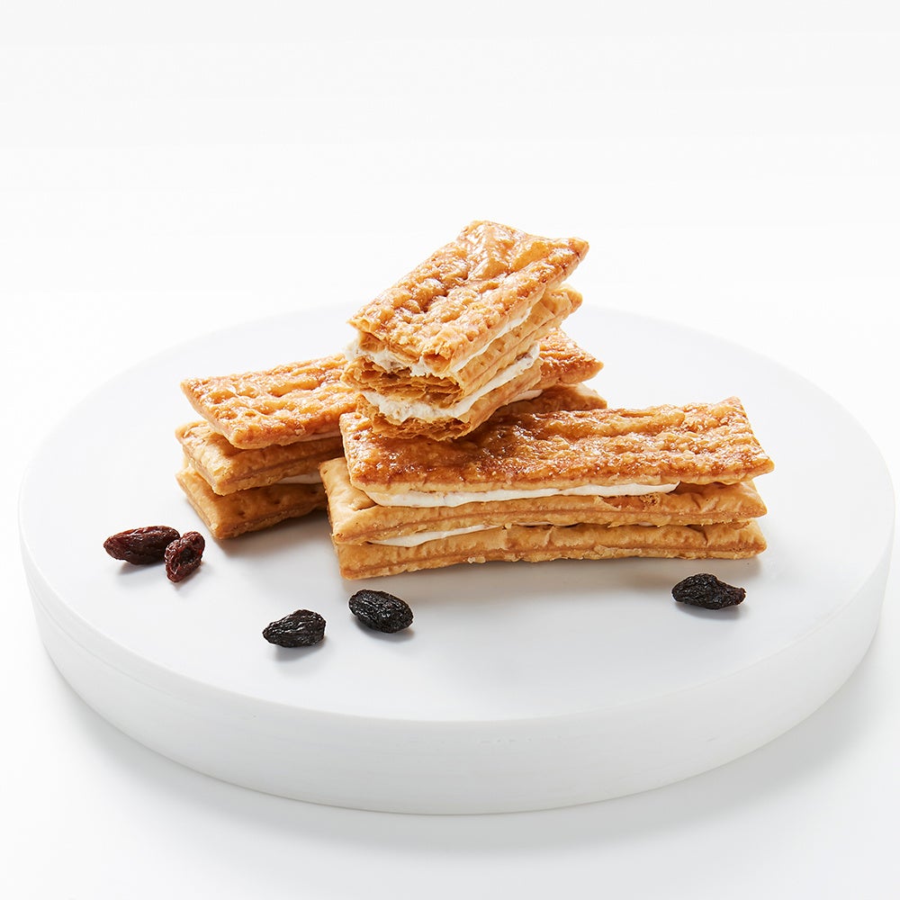 大人の街「銀座」をイメージしたラム酒香るレーズン入りのクリームを、サクサクのフィユタージュでサンドしました。