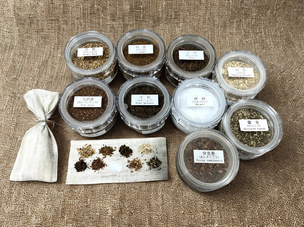 約10種類の香木や薬草を配合しながら「におい袋」を完成させる調合体験。(麻袋付き)