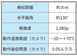 8mのエリアに予め任意で設定した距離に人が近づいた際に、侵入者による合図無しでもオペレーターへはモニターでの警告とブザー音で、侵入者へは重機後方に設置したAIカメラ左下のLED点灯(白色)で警告を発報することが可能。