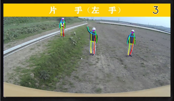 ※合図者が後ろ向きで合図を出した場合でも、同様に検知が可能。その際、左手or 右手の識別もできます。