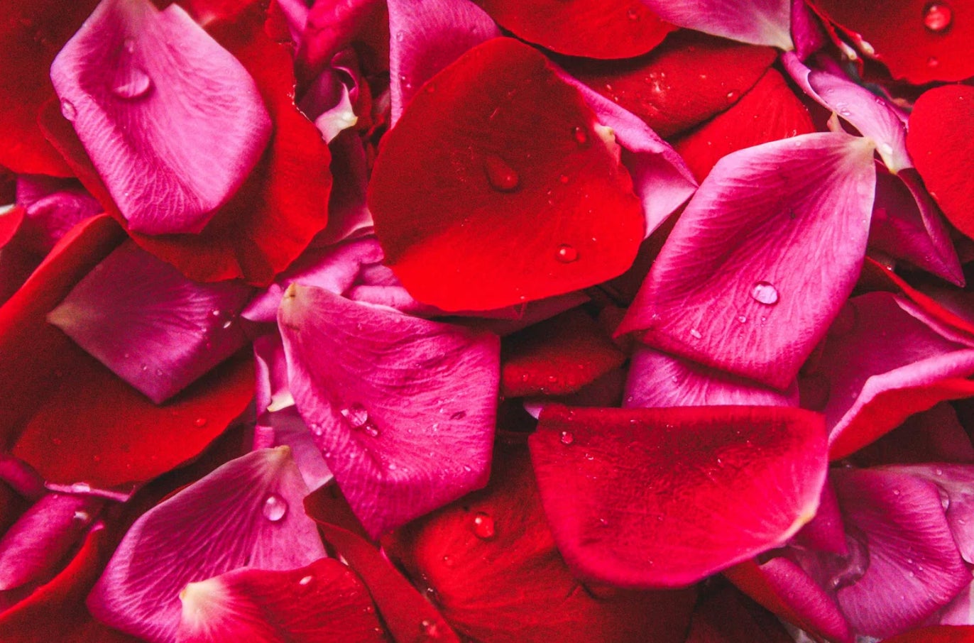 富山県射水産の朝摘みの香りが強いバラの花びらを使用。手作業で丁寧に分解し、砂糖を加えて細かくしたものを生地に配合しています。