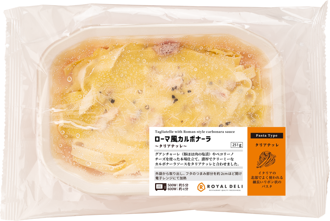 世界各国の料理を楽しめる家庭用フローズンミール「ロイヤルデリ」ディナーパスタシリーズに『ローマ風カルボナーラ~タリアテッレ~』が新登場
