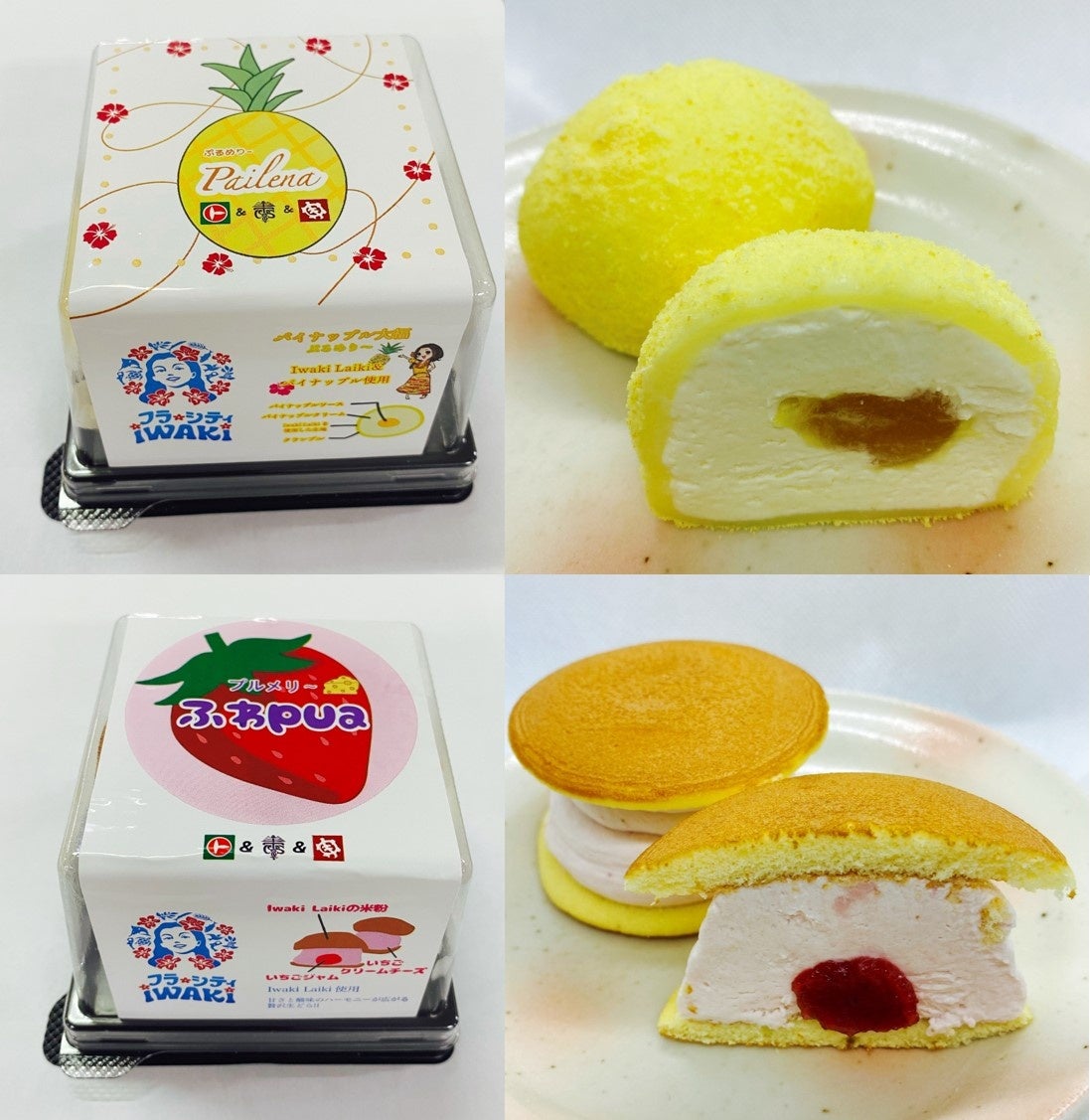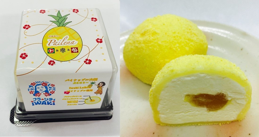 (2) 商品名の由来:いわき市は「東北のハワイ」と紹介されることから、ハワイのイメージ果実であるパイナップル風味の洋風な大福を作ることになりました。試作されたパイナップル風味の大福の見ためが黄色でもあった事から、ハワイ語で黄色を意味する「メレメレレナ」をパインと組み合わせて「パイレナ」となりました。