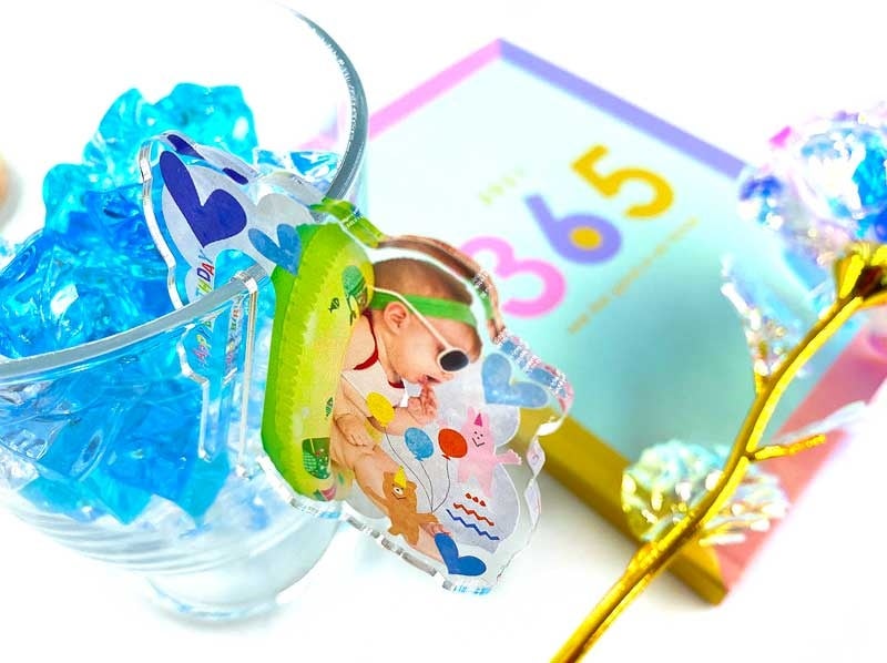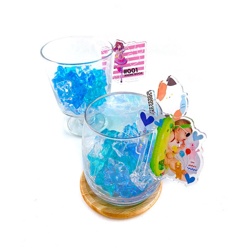 オリジナルで作るグラスマーカーは写真映え抜群。アクリル素材を使用し、クリアで透明感のある仕上がりに。大好きなアイドル、キャラクター、あるいは思い出の写真をプリントすることで、普段の飲み物タイムが一層楽しくなります。
