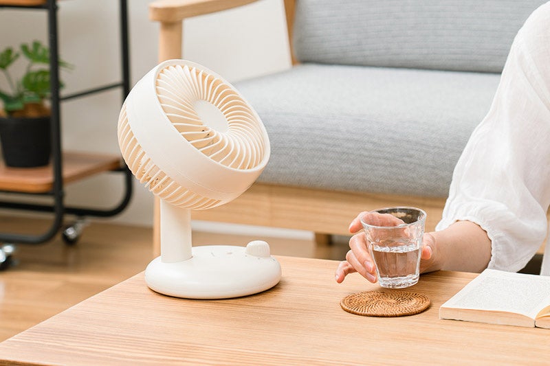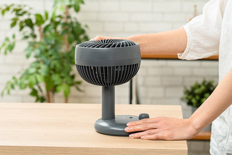 ファン&サーキュレーターで年中使える1台2役!2023年夏の新作「コードレスミニリビングファン 無段階風量調節」がplus more(プラスモア)から新登場。