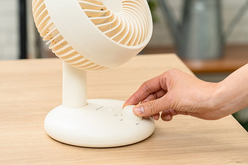 左右首振り・上向き機能の搭載で使いやすさ◎、さらに無段階の風量調節で使う人の「ちょうどいい」を実現