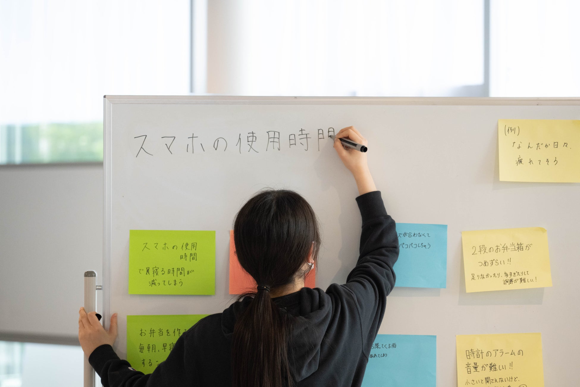 ワークショップの後半で行われたプレゼンテーションでは「子どもが親の言うことを聞いてくれない」といった悩みから、親子間の約束ごとを可視化し、スタンプなどで進捗を共有できるアプリ「コネペア」というサービスが提案されるなど、高校生ならではの柔軟な発想からたくさんのアイデアが発表されました。