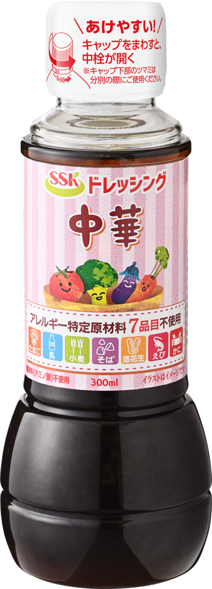 「SSK アレルギー特定原材料7品目不使用シリーズ」は、2015年よりフレンチ白ドレッシング、ごまクリーミードレッシング、和風ドレッシング、ノンオイル青じそ、コールスロードレッシング、和風クリーミードレッシング、たまご・乳を使っていないシーザーサラダドレッシング(2023年2月21日発売)、たまごを使っていないマヨネーズタイプを発売し、全11商品のラインナップとなりました。主に学校給食等でご使用いただいております。食物アレルギーでお悩みの方だけでなく、みんなが同じ食卓で同じメニューを楽しむことができます。