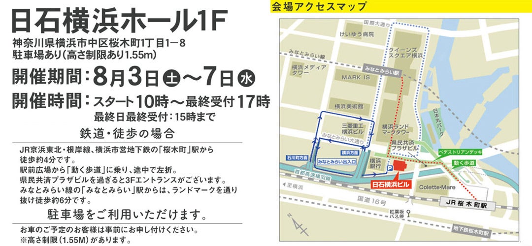 日時:2024年8月3日(土)から7日(水)10時から17時まで(最終受付)