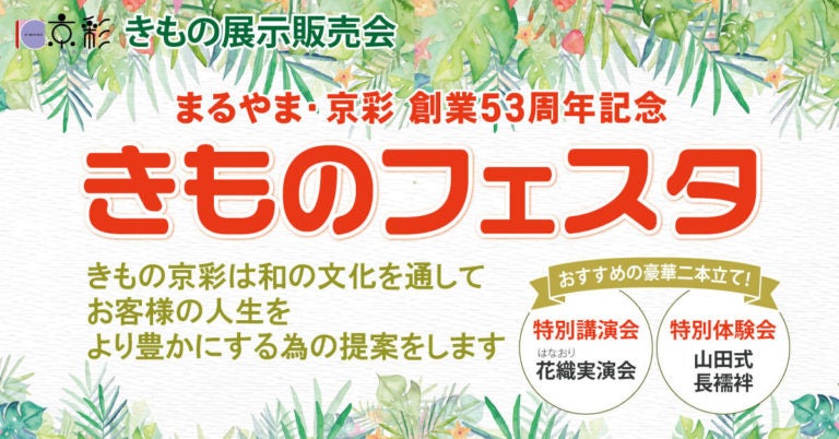 まるやま・京彩グループ創業53周年記念、横浜地区最大級の着物展示販売会『きものフェスタ』を開催!豪華2本立て特別企画をご用意!2024年8月3日(土)から7日(水)まで!