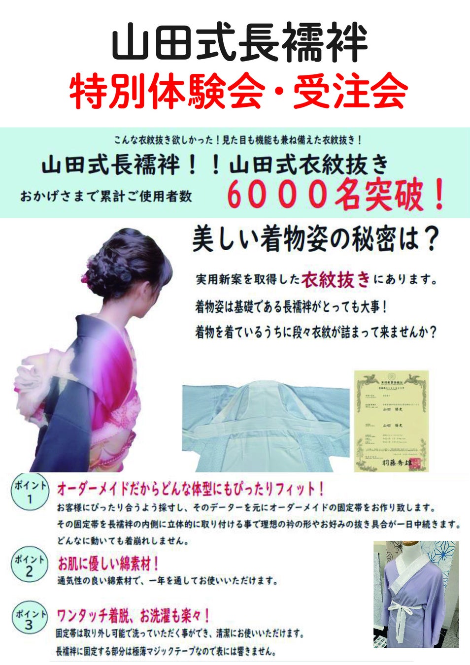 理想の衿の形が持続し、美しい着物スタイルが作れる「山田式長襦袢」体験会。