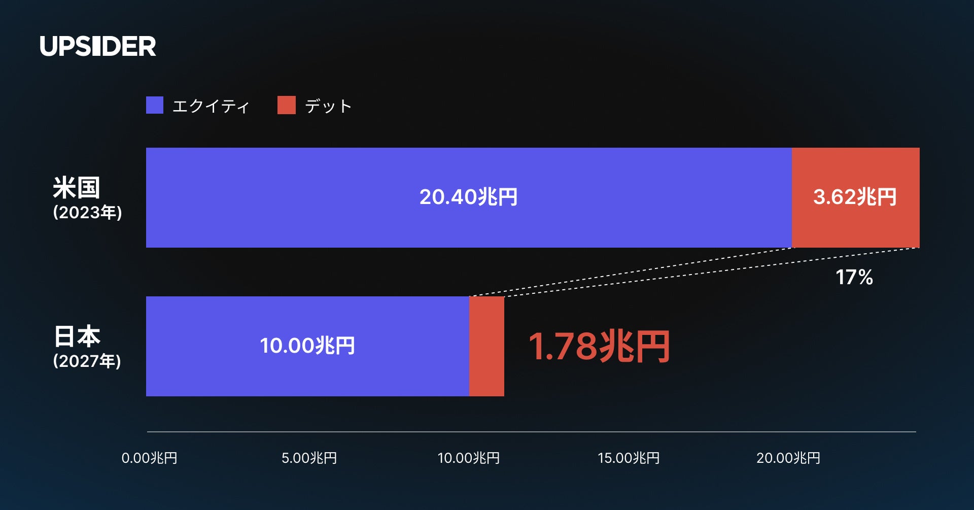 * 米国のエクイティファイナンスに対するデットファイナンスの比率から試算。詳細は本文に記載。
