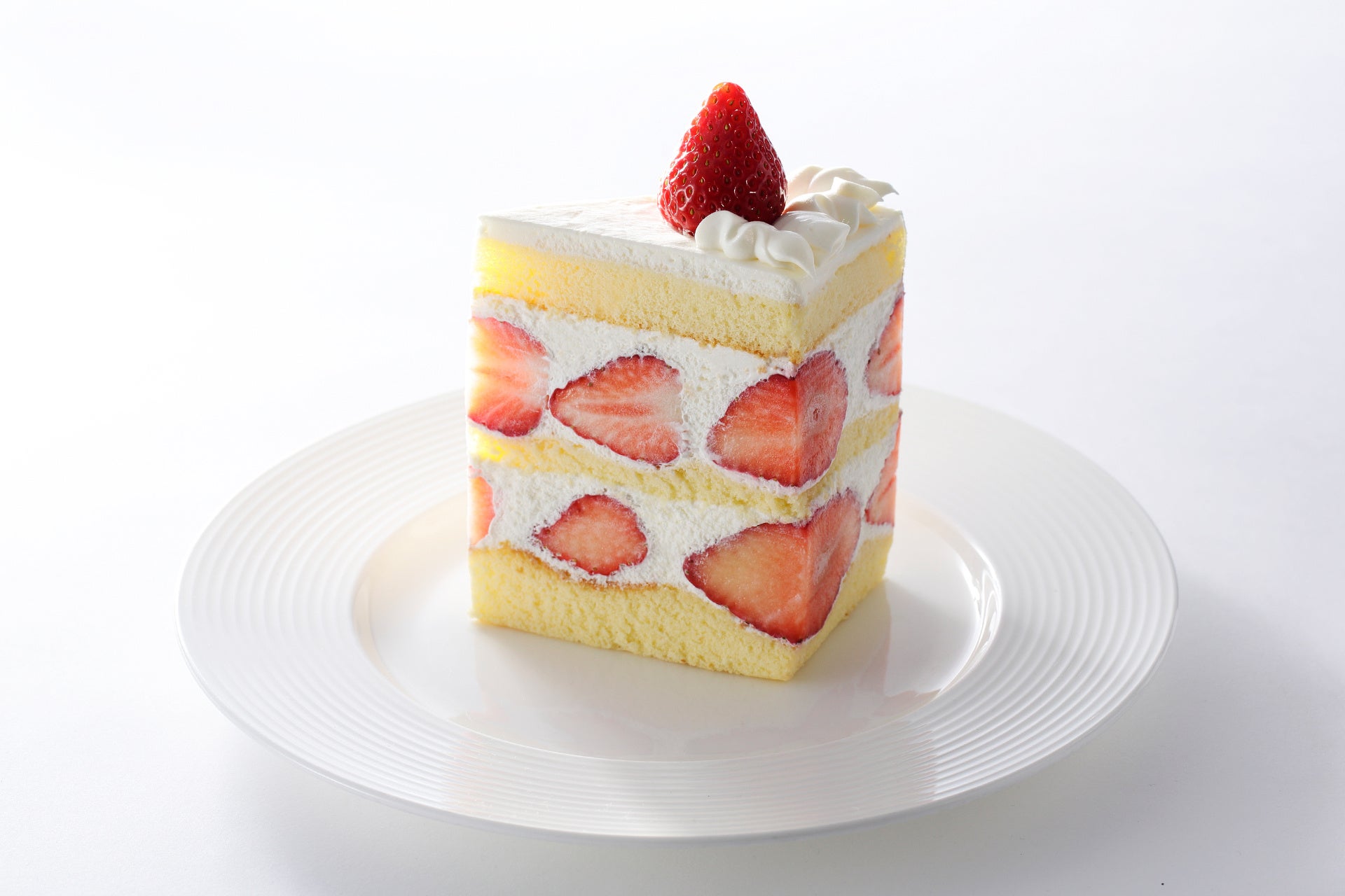 また倒れにくい形を追求し、ショートケーキでは珍しい台形にカットしているのも特長です。
