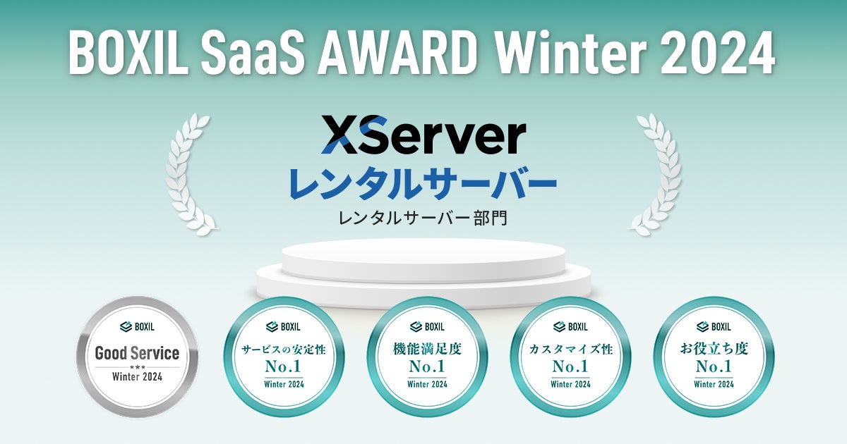 エックスサーバー株式会社(所在地:大阪市北区、代表取締役:小林 尚希)が運営するレンタルサーバーサービス『エックスサーバー』 が、「BOXIL SaaS AWARD Winter 2024」レンタルサーバー部門において、「Good Service」「サービスの安定性No.1」「機能満足度No.1」「カスタマイズ性No.1」「お役立ち度No.1」に選出されました。