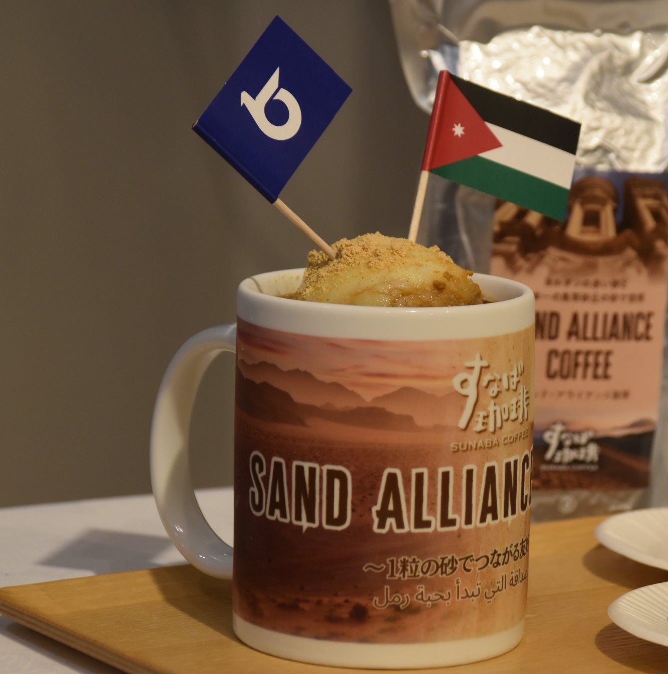 この「サンド・アライアンス」を象徴する交流のひとつとして誕生したのが、「SAND ALLIANCE COFFEE(サンド・アライアンス珈琲)」です。本商品は、最初の同盟国であるヨルダンの「ワディ・ラム」砂漠の砂と鳥取砂丘の砂を使って焙煎したコラボレーション珈琲で、平井知事による「スタバはないけど、スナバはある」という発言をきっかけに生まれた鳥取県で愛されているご当地コーヒーチェーン「すなば珈琲」が開発しました。