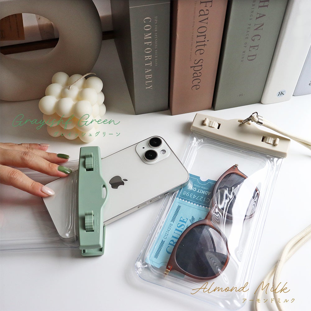 本製品は、この暑い夏を楽しんでいただきたいという気持ちからデザインだけでなく、価格にもこだわったスマートフォン用防水ケースです。スマートフォンを防水ケースに入れたままでもクリアな写真撮影が可能です。国際防水規格「IP68」を取得し、「継続的に水没しても内部に浸水することが無い(水中形)」という基準を満たす、心強い防水ケースです。フェスやキャンプ、プールでのレジャー使用や、雨の日やバスタイムでの普段使い、さまざまなシチュエーションでお使いいただけます。