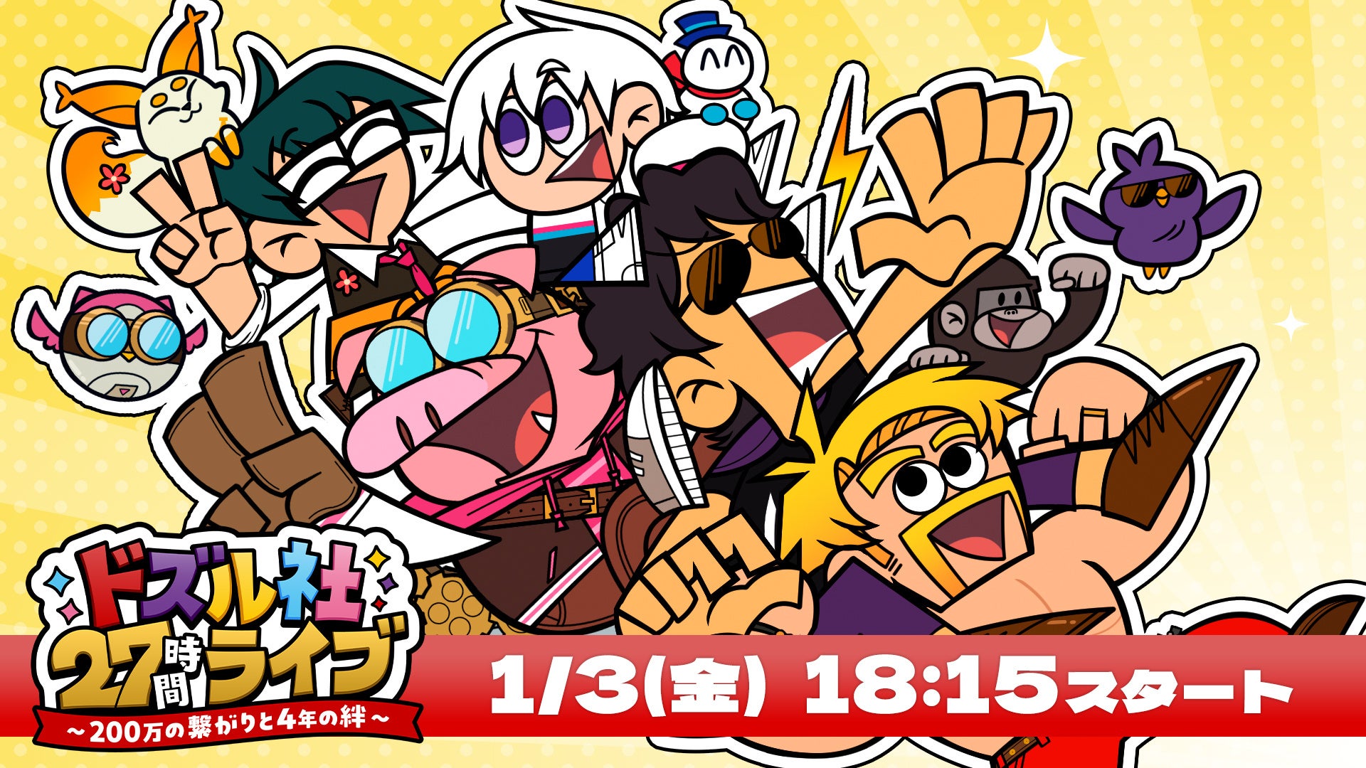 また、チャンネル登録者数200万人突破と1月3日に迎えるドズル社4周年を記念して、長時間生放送『ドズル社27時間ライブ』を2025年1月3日(金)18:15から開催します。