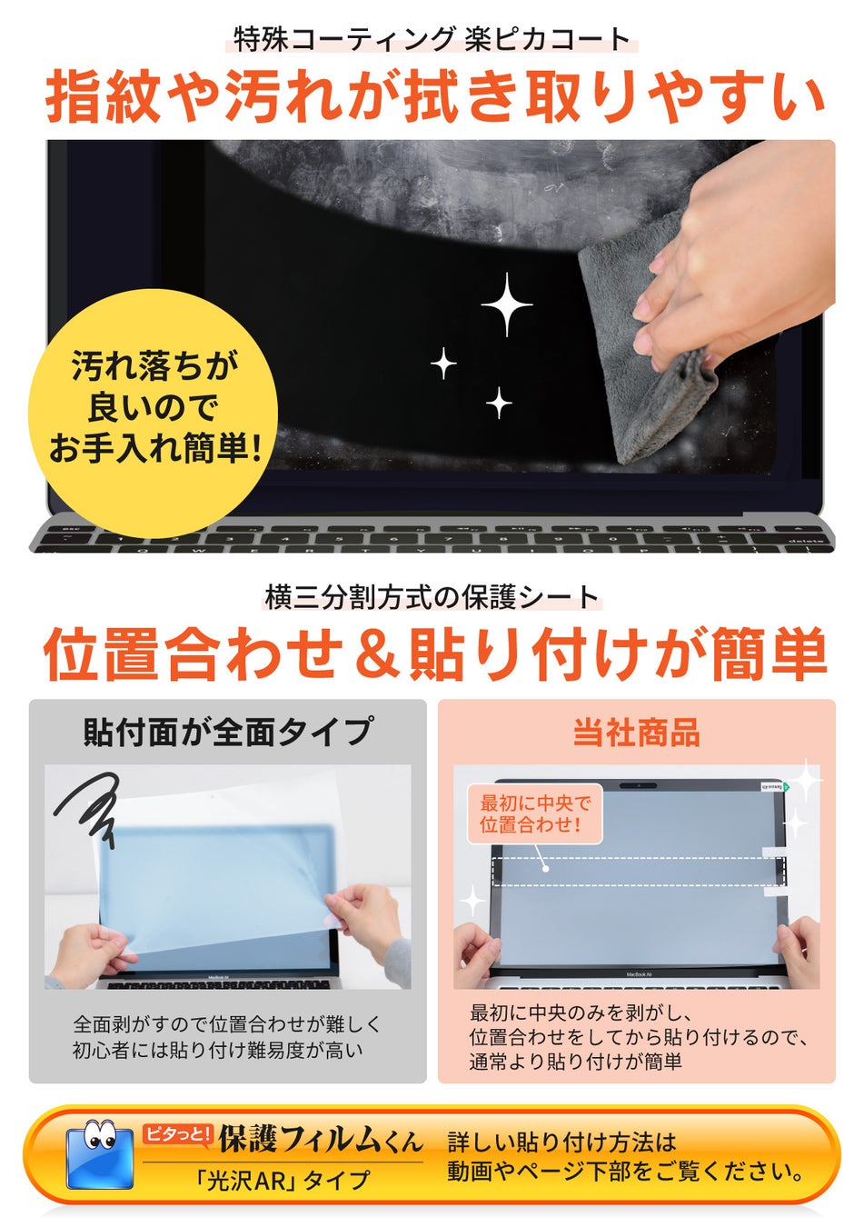 「ピタっと!保護フィルムくん MacBook用 ハイグレードARフィルム」の特徴