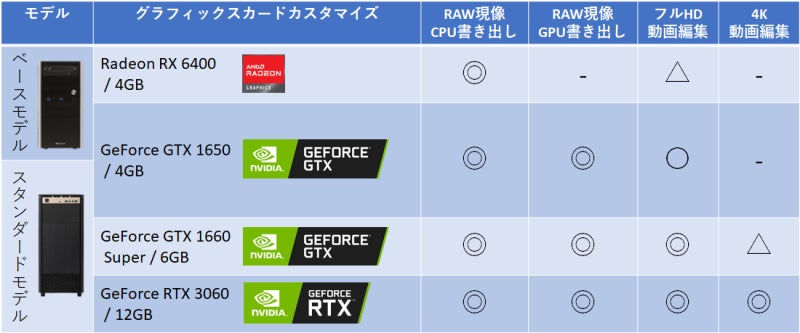 写真だけでなく動画をメインに扱う方にも。最適な用途別のグラフィックスカードをご用意