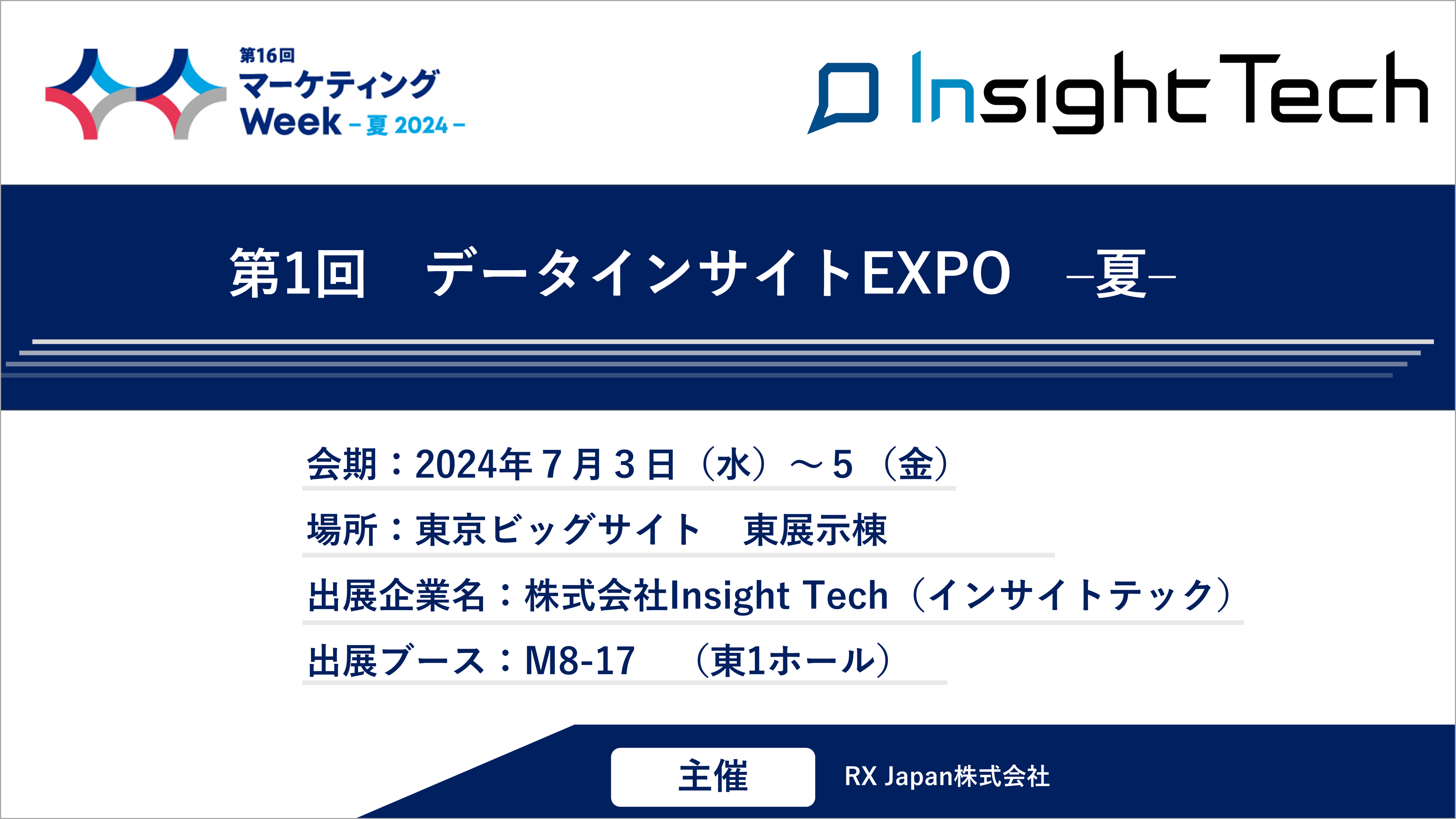 Insight Techは、第16回 マーケティングWeek-夏 2024-の構成展である「第1回データインサイトEXPO-夏-」にブース出展いたします。